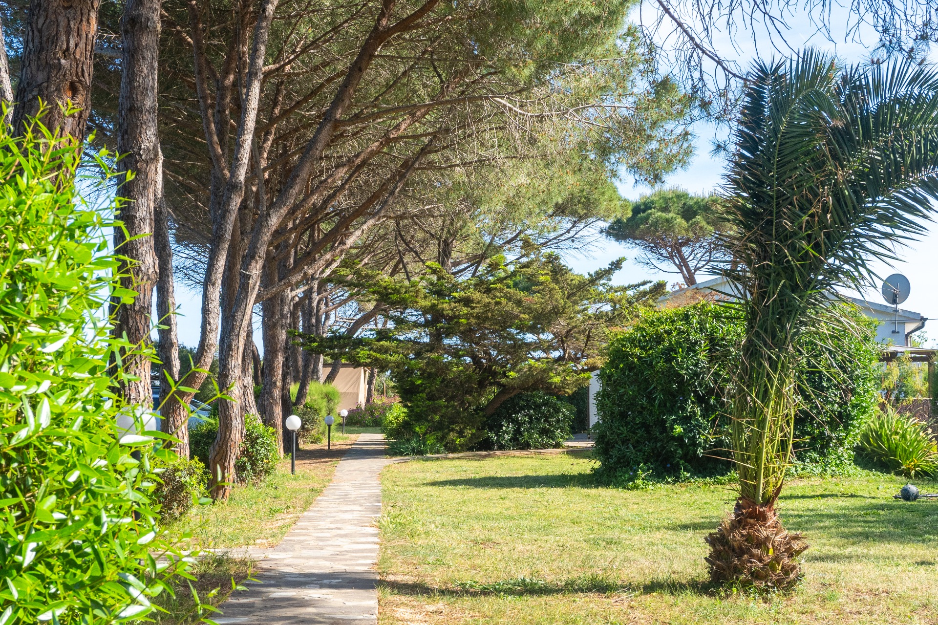 I nostri appartamenti godono di una posizione unica, si trovano infatti all'interno di un parco che si affaccia direttamente sulla spiaggia di Lacona, a cui si accede percorrendo per pochi metri un sentiero tra arbusti e fiori profumati. In primavera ed in estate, quando i gigli, le violaciocche ed i cisti sono nel pieno della loro fioritura, la parte più vicina alla spiaggia diventa un vero e proprio giardino, spontaneo e naturale, adagiato sulla sabbia
