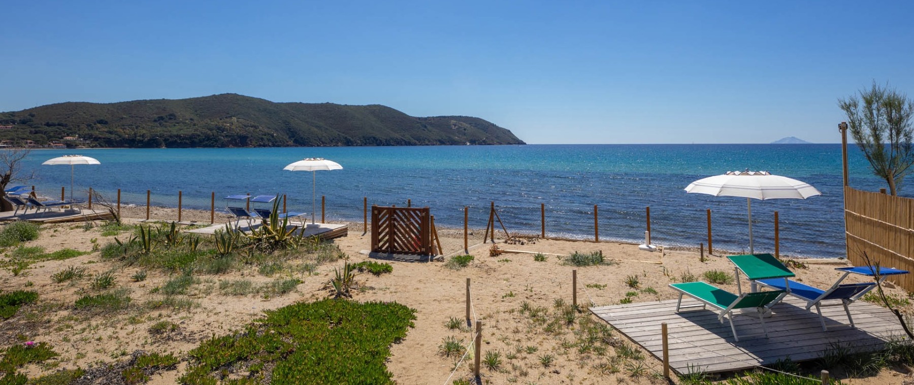 Unsere Ferienwohnungen befinden sich auf einem 6000qm grossen Grundstueck innerhalb vom Naturschutzgebiet "Parco Nazionale dell'Arcipelogo Toscano", direkt hinter dem großen Sandstrand von Lacona. Hier wachsen Pinien, Palmen und in Strandnaehe die typische Vegetation der Dünen von Lacona, unter anderem auch die schöne, seltene, weiße Meereslilie. Nur ein kleiner sandiger Weg und ein Holztor trennen Ihre Wohnung vom Strand